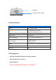 Speaker Tamper-proof screw 1.1 Specifications Item Description Sensor 1/2.7" 1080P CMOS Lens EFL 3.2mm@ F2.5, Field Angle(D*H*V):140°X105°X78° Image Resolution Max : 1920x1080 Video Bitrate Auto Adapter Wireless standard Wi-Fi: IEEE802.11b/g/n 2.4G Power Supply 5V (Micro USB) or 12~24V(AC/DC) Battery 18650 Lithium ion rechargeable batteries * 2 Dimension(mm) 143mm x 72mm x 34mm Weight(g) 191g 1.
