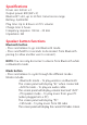 Specifications Driver size: 52mm x 2 Output power: 8W (4W x 2) Bluetooth® v4.0, up to 30 foot transmission range Battery: 2,600mAh Play time: Up to 8 hours at 70% volume Charge time: 4 hours Frequency response: 100 Hz - 20 kHz Impedance: 4Ω Speaker button functions Bluetooth button • Press and release to go into Bluetooth mode. • Press and hold for 3 seconds to disconnect from Bluetooth pairing (to allow another user to connect).