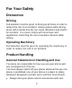 For Your Safety Distraction Driving Full attention must be given to driving at all times in order to reduce the risk of an accident. Using a phone while driving (even with a hands free kit) can cause distraction and lead to an accident. You must comply with local laws and regulations restricting the use of wireless devices while driving. Operating Machinery Full attention must be given to operating the machinery in order to reduce the risk of an accident.