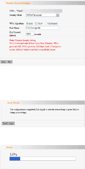 and AES for “WPA Algorithms.” Click “Next” to save the