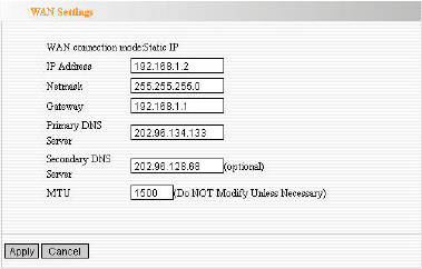 If your connection mode is static IP, you can modify the following