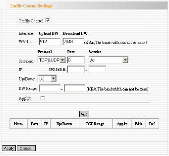 ¾ Enable Traffic Control: To enable or disable the internal IP