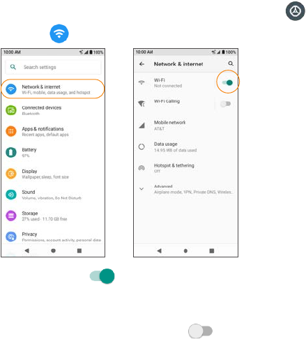 • To disable Wi-Fi, slide the Wi-Fi switch to the Off position.