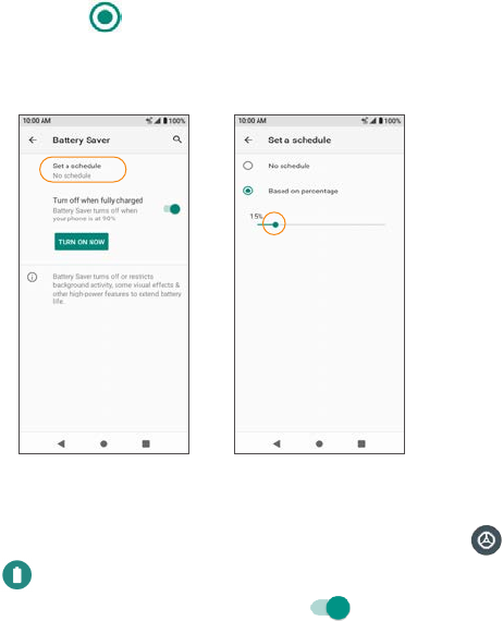 • Set a schedule: Tap Based on percentage and drag the slider to the