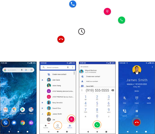 • Enter a phone number in the keypad to make a call. Tap to make a