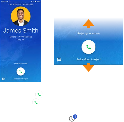 default caller ID icon and phone number appear on the Incoming Call screen.