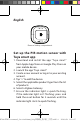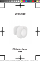 English Introduction The smart PIR motion sensor detects movement and send real-alert notification to smartphone. Requirement to use 1. Tuya smart app 2. Tuya zigbee gateway (not included) Installation 1. Pu l l t h e i n s u l at i o n s h e e t f ro m b at te r y compartment of the PIR motion sensor. 2. Set up the PIR motion sensor with Tuya smart app. 3. Make sure the PIR motion sensor is in the range of Zigbee gateway's signal. 4. It is recommended to install the PIR motion sensor at 2.2m height.