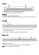 Left View 1 . Earphone jack: 3.5mm standard earphone jack. 2 . Micro USB 2.0 port: Connect USB devices. Comment: 1. USB port support charging function. 2. When the battery is below 30%, please do not insert high-current device. Front View 1. Power button: Press to enter standby/wake up mode; Press and hold to switch On/Off the unit. 2. Vol+/- Button: Press the increase/decrease the volume. Bottom View 1. Keyboard connector 2. Memory Card Slot: Insert the memory card (not supplied) here.