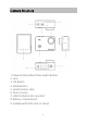 Camera Structure 1. Power Button/Video,Photo Switch Button 2. Lens 3. OK Button 4. Mode Button 5. Heat Emission Hole 6. Touch Screen 7. USB Port/Micro SD Card Slot 8. Battery Compartment 9.