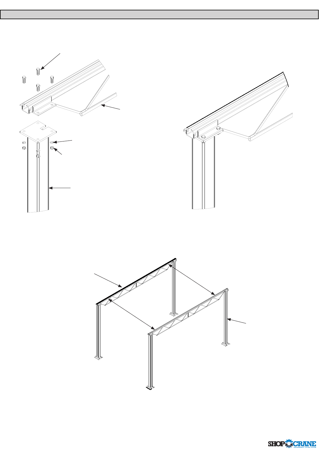 3.1 Set the runways on top of the columns. Attach runways to columns using four (4) 1/2-13, 1.5” long bolts,