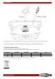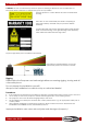 X-Terminator Product Specifications Model: Input Voltage: Continuous Power: Fuse: Dimensions: Weight: X-Terminator AC 100-240V, 60/50Hz 50 Watt 1,6AL/250V 335 x 215 x 197 mm (LxWxH) 2,5 kg Operation and Programming Signal pin OUT: Set Up and Addressing: DMX Channels: Signal input: Signal output: pin 1 earth, pin 2 (-), pin 3 (+) Red LED display for all settings 2CH, 11CH 3-pin DMX signal connector IN 3-pin DMX signal connector OUT Electro-mechanical effects Laser Class: Laser Power: Light Source: LED C