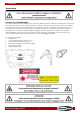X-Terminator Installazione Consultare le linee guida europee e nazionali relativamente all'installazione, fissaggio su traliccio e altre tematiche a livello di sicurezza. Non cercare di installare il prodotto da soli! Rivolgersi sempre a un rivenditore autorizzato per eseguire l'installazione! Procedura: ● ● ● ● ● Nel caso in cui il faro venga appeso al soffitto o a delle travi, sarà necessario fare ricorso a tralicci professionali.