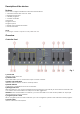 8) Audio sensitivity Used to adjust the input sensitivity of the external audio inputs. Adjust the level until the sound activated functions work nicely to the rythm of the music. 9) Dimmer channels These are 4 faders used to set the individual dimming levels of the 4 channels. Below each fader there's a flash button to set the output of the corresponding channel to 100% (full) for as long as the button is pressed. 10) Program display Shows which of the 4 modes is currently active.
