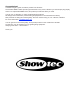 Showtec Showtec RGB Theatre Spot™ Product Guide Warning..…...................................................................................………………………………………….. Safety-instructions………………………………………………………………………………………….…. Operating Determinations……………………………………………………………………………………. 2 2 3 Description..…..............................................................................……….………………………………… Features and Overview ………………………………...….……………….………….………………….…. Backside…………………………………………………...…...….……………….…………………...….….