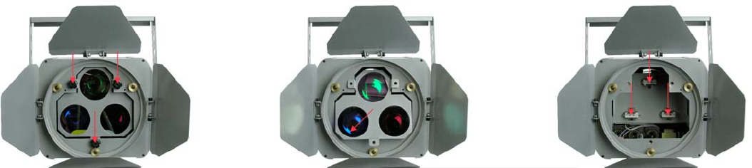 The Showtec RGB Theatre Spot uses 3x A1/244 500W Lamps (ordercode 80701P / 80701G), as