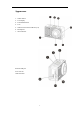 - Appearance 1. 2. 3. 4. 5. 6. 7. Shutter button LCD display Power/Mode button Lens WIFI switch and status indicator (red) Microphone Work indicator 8. Micro USB port 9. TF card slot 10.