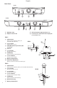 English Back Panel BLX4 12-15 V 160 mA POWER BLX88 ① INSTRUMENT OUT MIC OUT ② ④ ③ 12-15 V 320 mA MIC OUT ③ INSTRUMENT OUT ④ ② ① DC Power Jack ② Adapter Cord Tie-Off INSTRUMENT OUT MIC OUT POWER ① ④ ③ ③ XLR microphone output jack (MIC out) ④ 6.35 mm (1/4") instrument level output jack (instrument out) BLX1 ① LED Indicator Displays power and battery status (see Transmitter LED Indicators). BLX1 ④ ② ② power Switch Toggles power on or off.