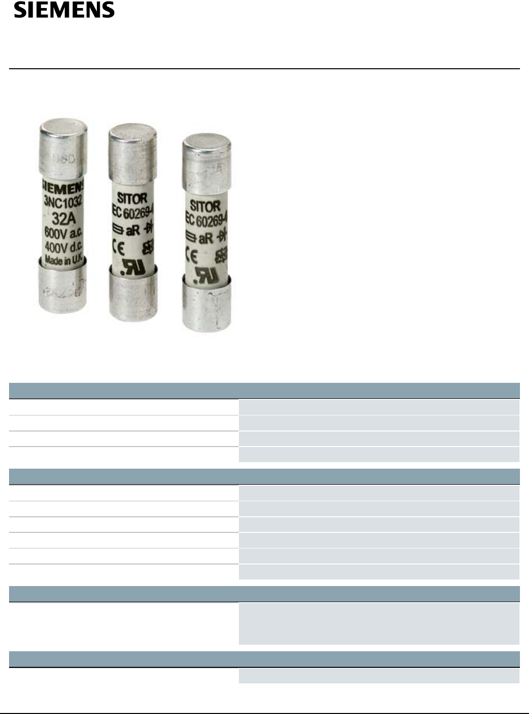 Designação do produto SITOR Elemento de fusível cilíndrico