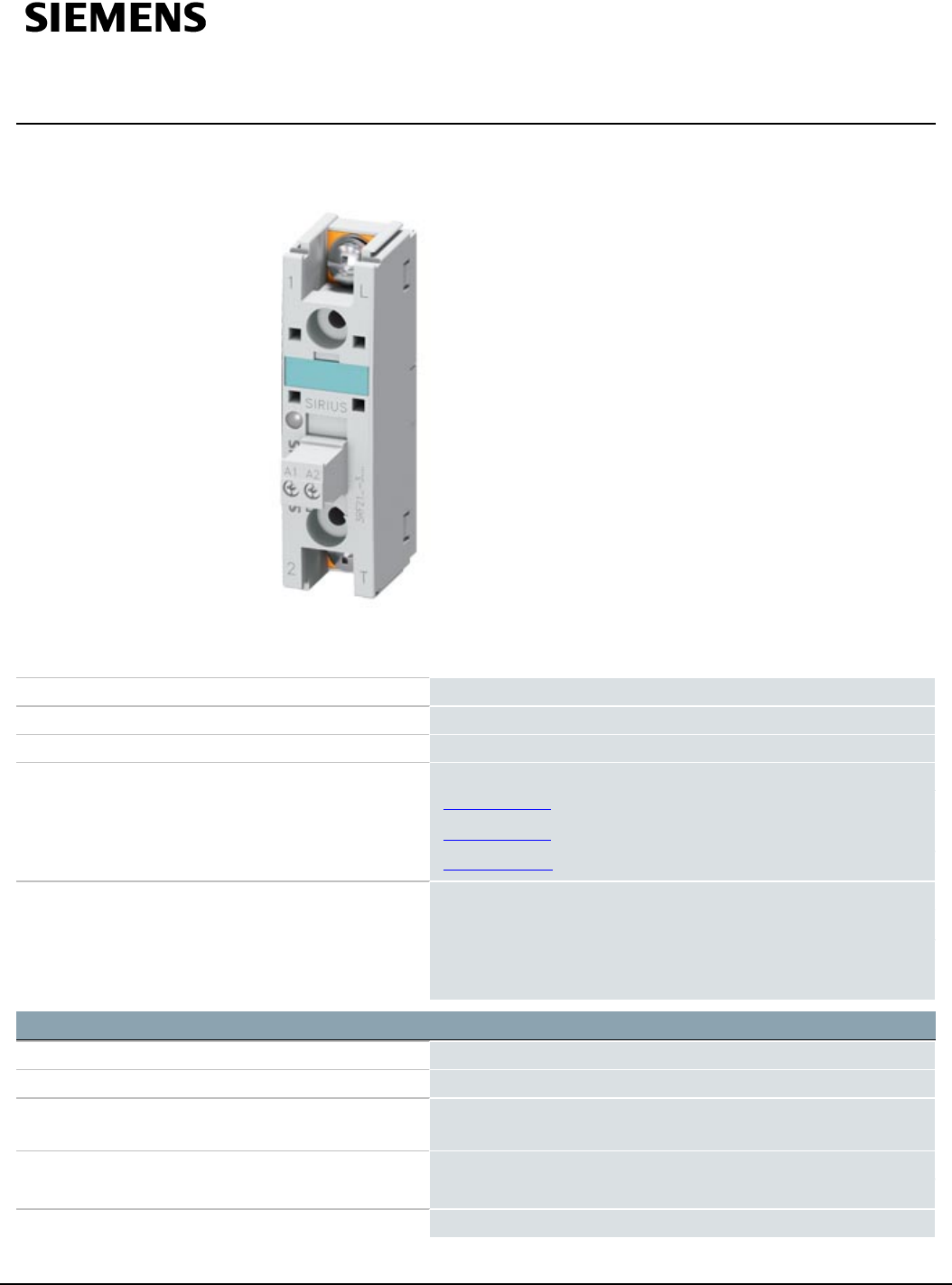 Semiconductor relay, 1-phase 3RF2 Width 22.5 mm, 20 A 24-230 V /
