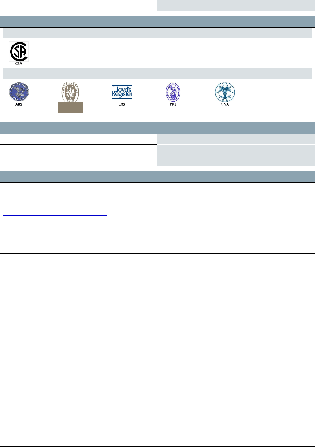 Certificates/approvals: