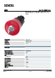 蘑菇头急停按钮, 22 mm,圆形, 塑料, 红色, 40 mm, 带