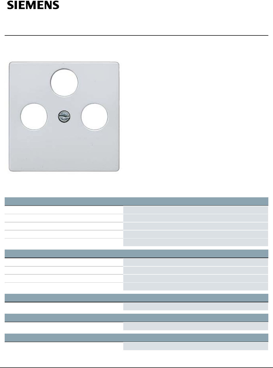 Product designation Cover plate, for TV/RF/SAT connection, 3-hole version