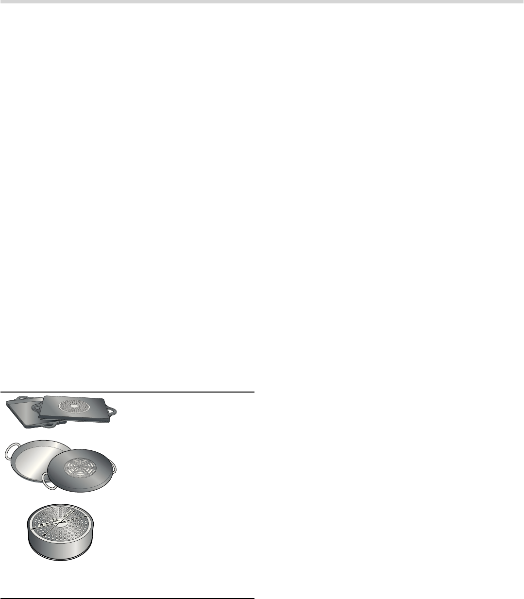 - ■ Ved tilberedning i vandbad kan kogesektionen og gryden springe på grund af overophedning. Beholderen i vandbadet må ikke være i direkte berøring med bunden i den vandfyldte gryde. Der må kun anvendes varmebestandige beholdere.