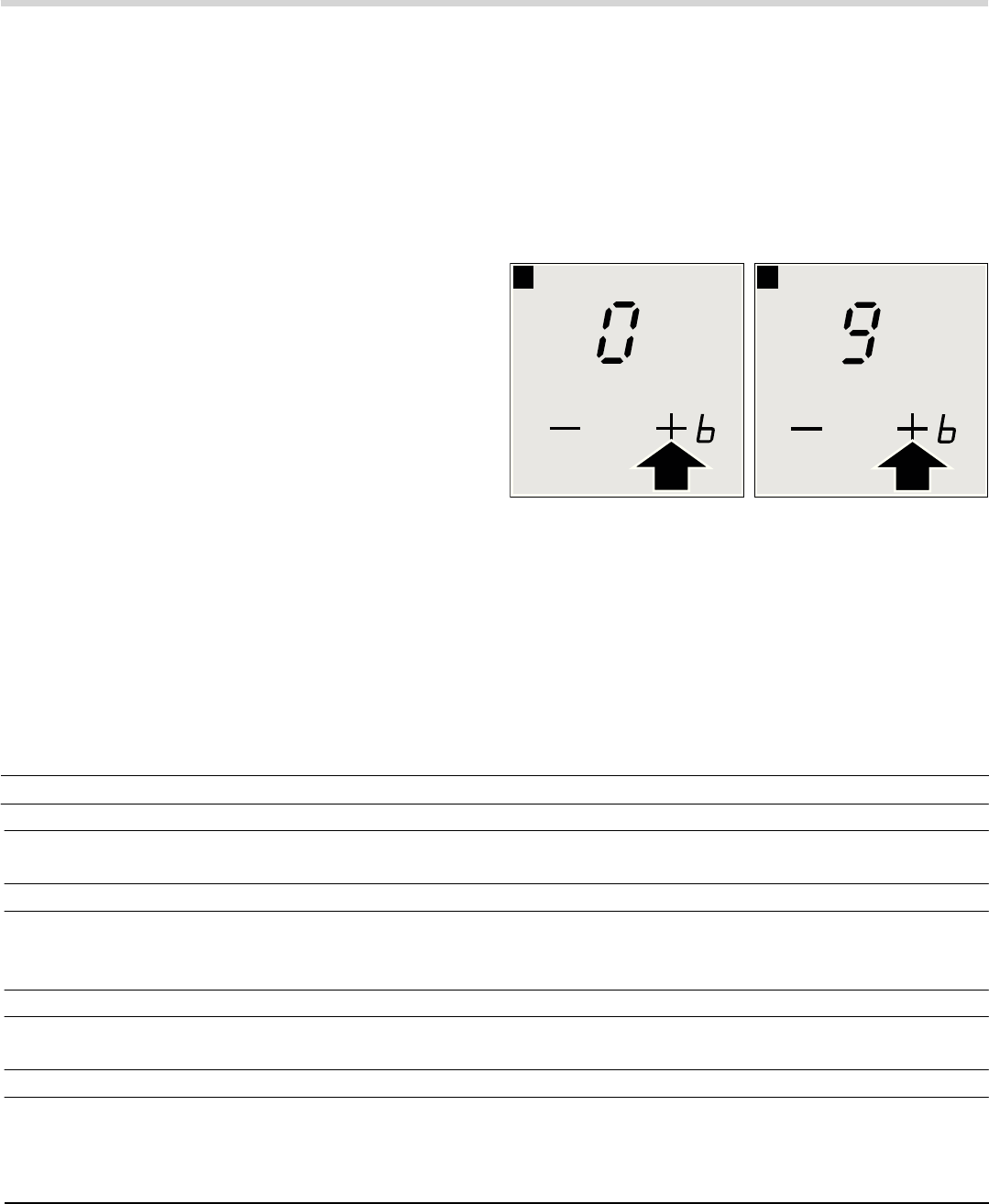 - 2. I de næste 60 sekunder skal du stille alle kogezoner på det ønskede styrketrin i henhold til den krævede tilslutningsintensitet, se tabellen.