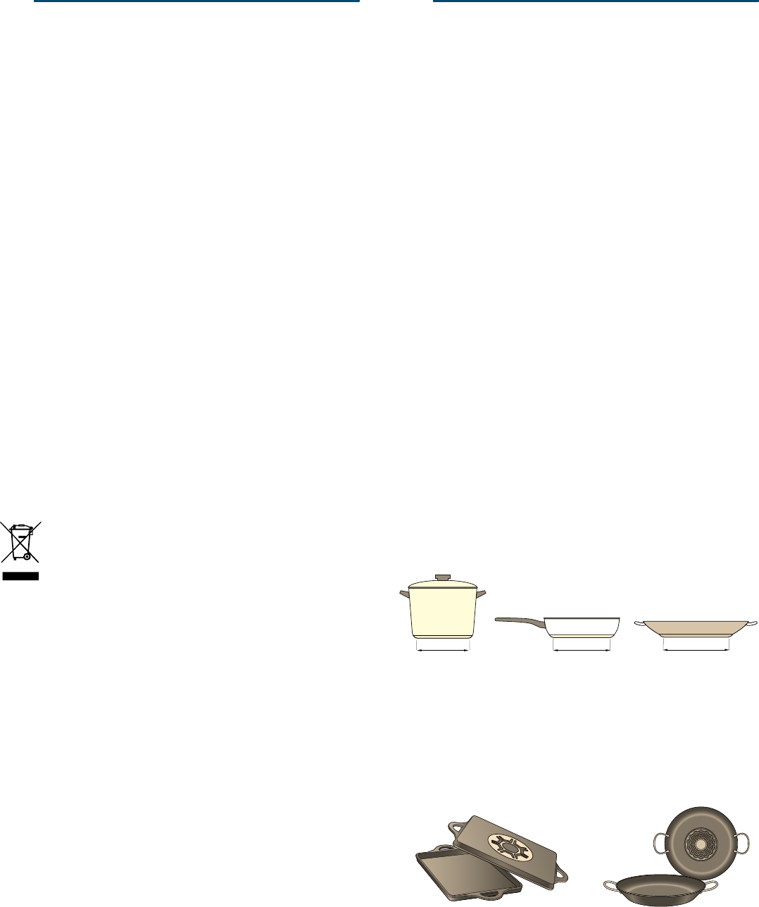 - 1. Collocare la stoviglia fredda con ca 200 ml di acqua al centro della zona di cottura che per diametro si addice al meglio al fondo della stoviglia.