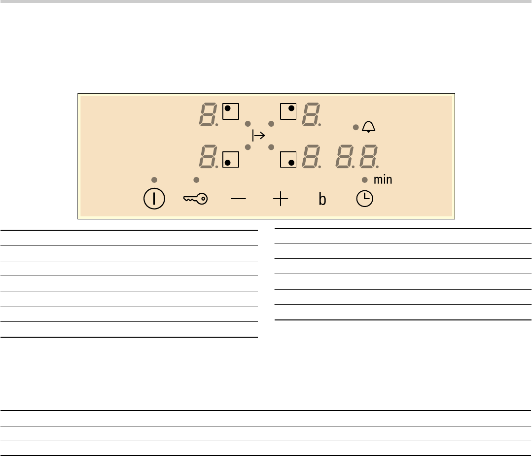 - 2. En los siguientes 60 segundos, colocar todas las zonas de cocción en el nivel de potencia deseado según la intensidad de conexión requerida, ver tabla.