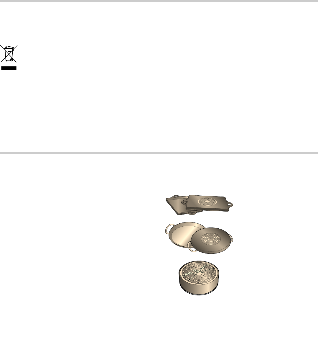 - ■ Los objetos de metal se calientan rápidamente al entrar en contacto con la placa de cocción. No depositar nunca sobre la placa de cocción objetos metálicos como cuchillos, tenedores, cucharas o tapas.