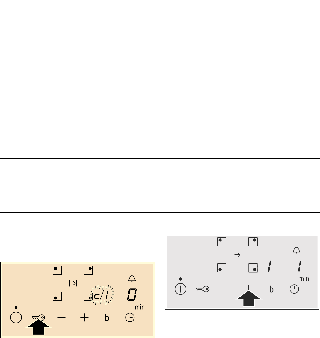 - 2. En los siguientes 60 segundos, colocar todas las zonas de cocción en el nivel de potencia deseado según la intensidad de conexión requerida, ver tabla.
