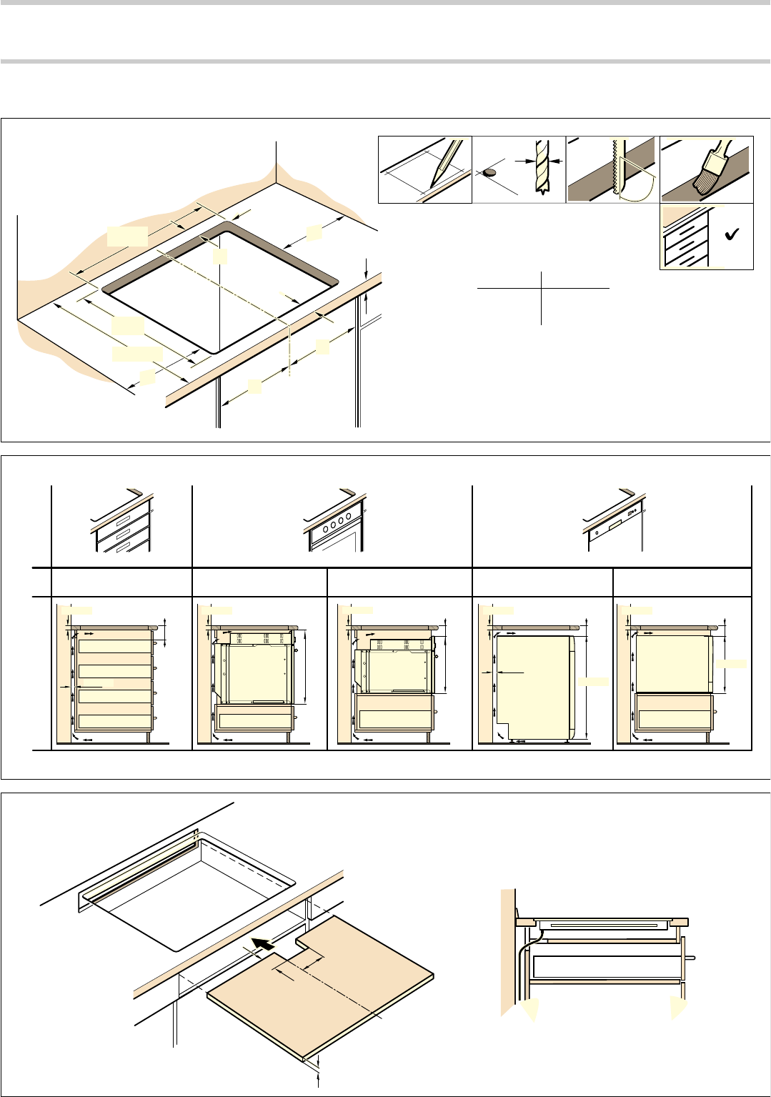 - ■ El aparato se calienta mucho. No guardar objetos inflamables o aerosoles en los cajones directamente debajo de la placa de cocción.