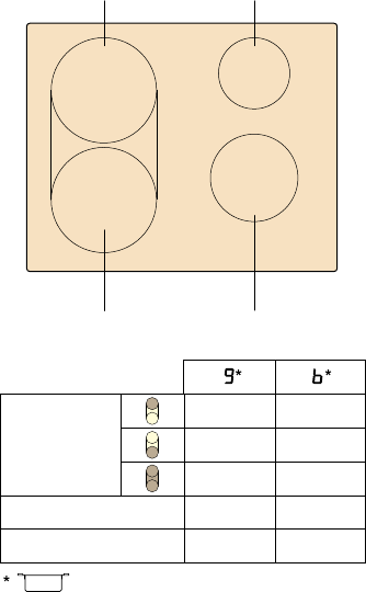 - ■ Średnica dna naczyń powinna odpowiadać wielkości strefy grzejnej. Uwaga: producenci naczyń zazwyczaj wskazują górną średnicę naczynia, która najczęściej jest większa od średnicy podstawy naczynia.