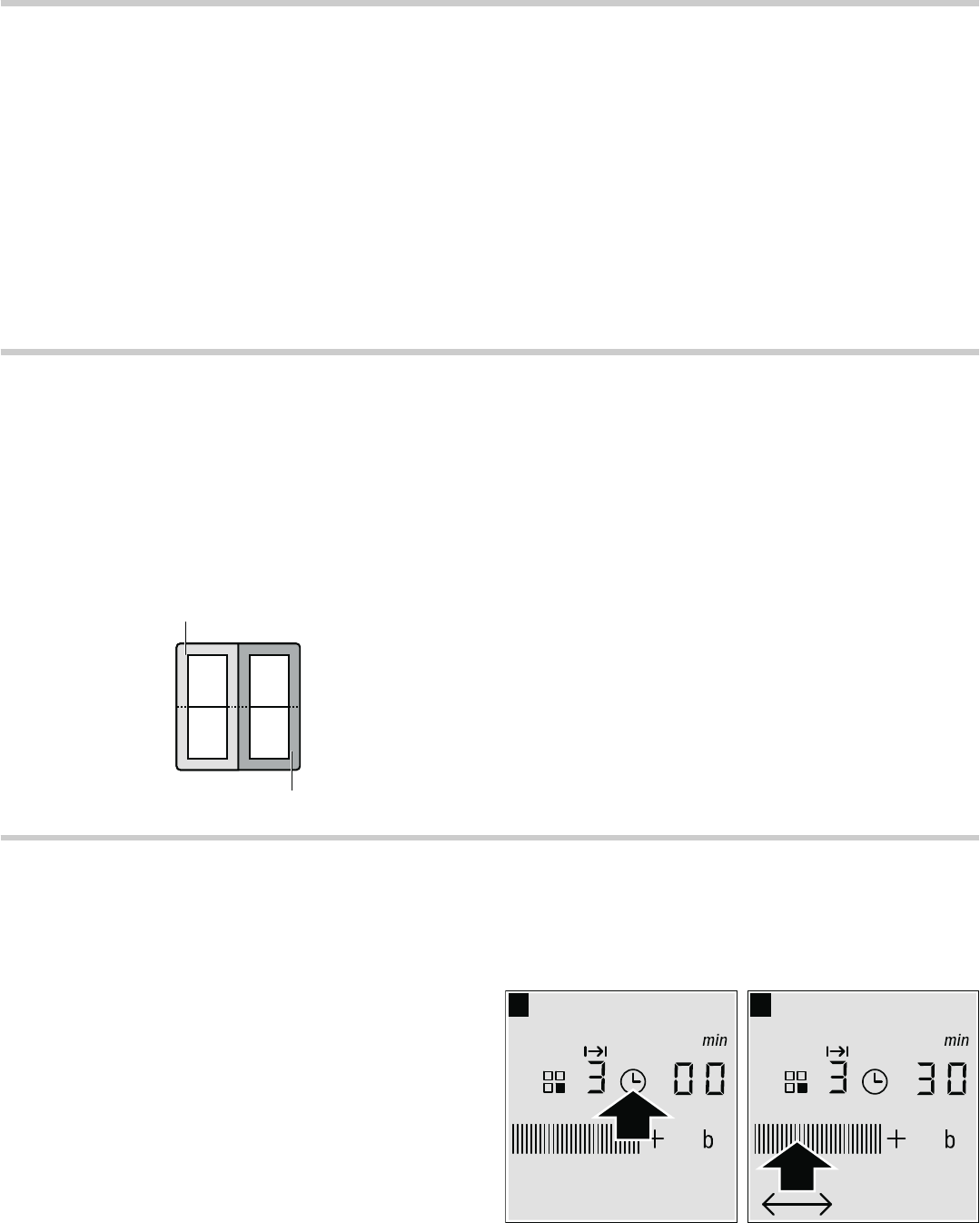 - 3. En los siguientes 10 segundos seleccionar en la zona de programación el tiempo de cocción deseado. El ajuste previo posible es de izquierda a derecha 1, 2, 3..... hasta 10 minutos.