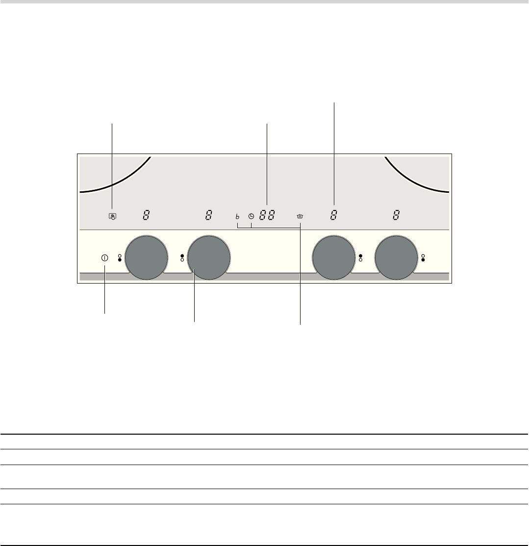 - ■ Keine heißen Gefäße auf das Bedienfeld, die Anzeigen oder den Kochfeldrahmen stellen. Das könnte zu Schäden führen.