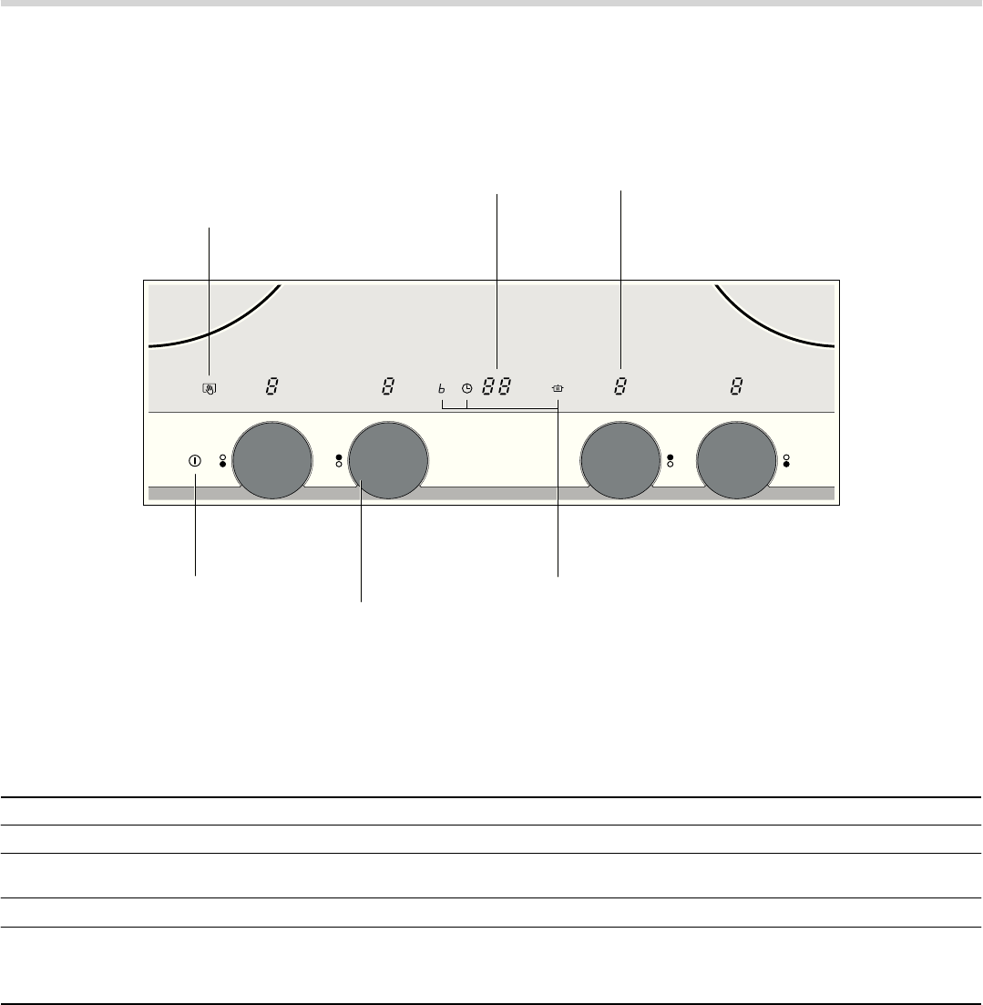 - ■ Keine heißen Gefäße auf das Bedienfeld, die Anzeigen oder den Kochfeldrahmen stellen. Das könnte zu Schäden führen.