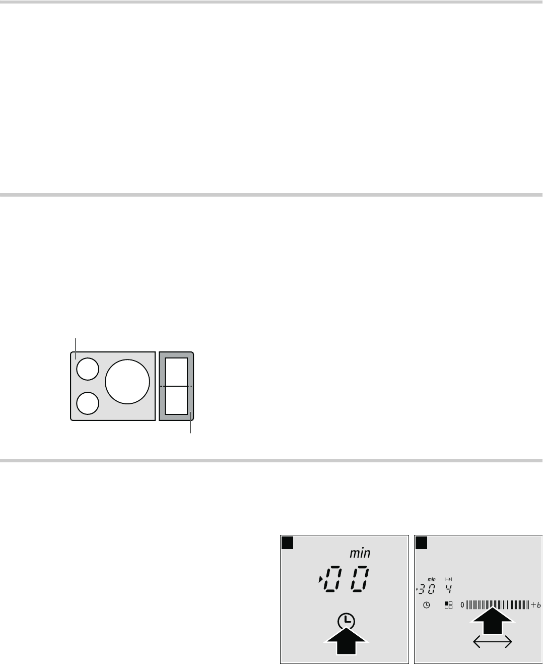 - 2. Auf das Symbol 0 drücken. Die Anzeige x der Kochstelle leuchtet auf. In der Anzeige der Zeitprogrammierfunktion erscheint ‹‹. Für die Auswahl einer anderen Kochstelle mehrmals das Symbol 0 drücken, bis die Anzeige x der gewünschten Kochste...