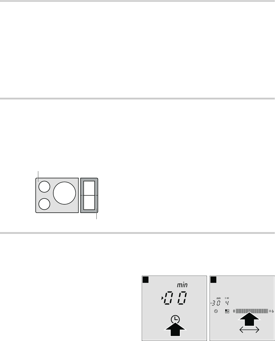 - 2. Auf das Symbol 0 drücken. Die Anzeige x der Kochstelle leuchtet auf. In der Anzeige der Zeitprogrammierfunktion erscheint ‹‹. Für die Auswahl einer anderen Kochstelle mehrmals das Symbol 0 drücken, bis die Anzeige x der gewünschten Kochste...