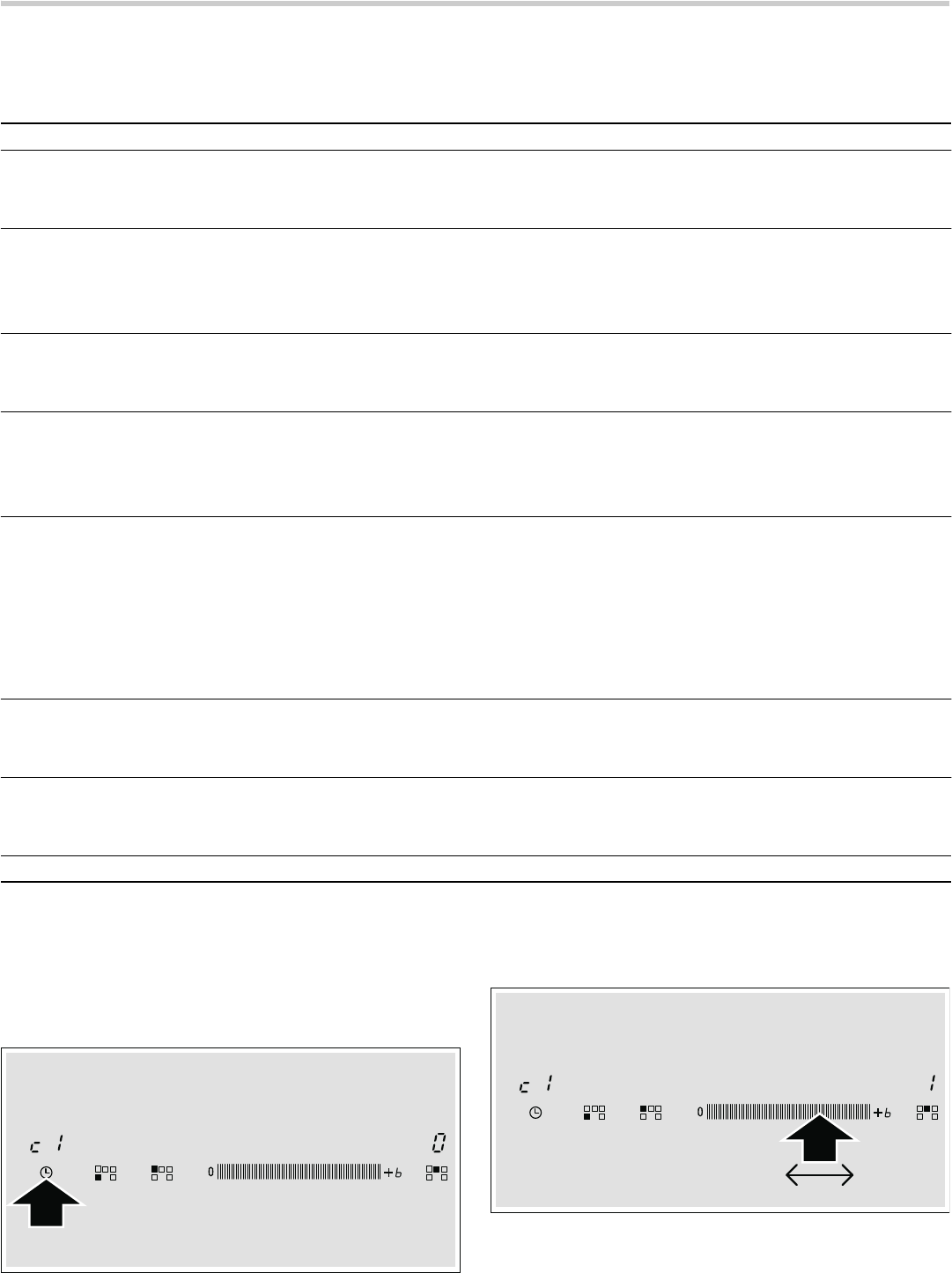- Bei Drücken irgendeines Symbols erlischt die Anzeige. Die Kochstelle kann nun neu eingestellt werden.