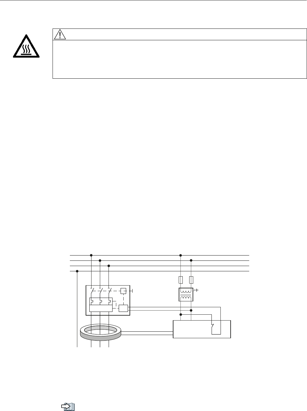 response limit current of 300 mA. Connect the RCCB in series with the overcurrent
