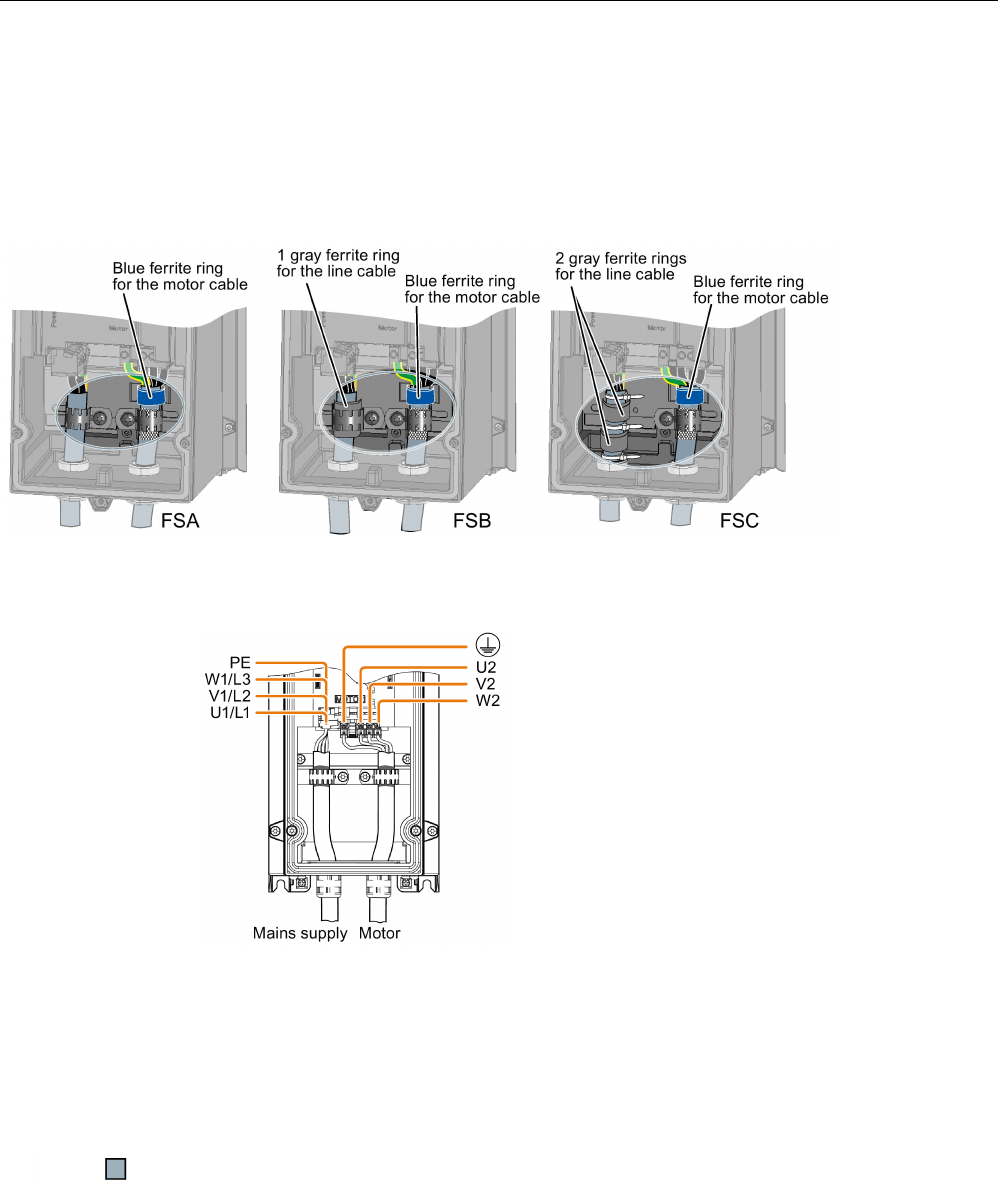 Figure 5-4 Ferrite rings for the mains and motor cables