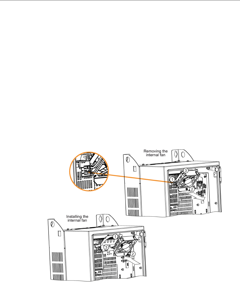 3. Unhook the fan from the holding plate and remove it from the enclosure
