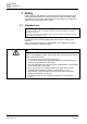 Installing Installing the Control Unit 5.4.2 5 Wiring terminal strips To access the interfaces on the Control Unit, you must remove the operator panel (if one is being used) and open the front doors. The terminal settings depend on the application. For more information, refer to Chapter Application examples [➙ 82]. 5.4.2.1 Overview of terminal strips Figure 18: Terminal strips 1-3 Item Siemens Smart Infrastructure Description 1 The analog input is supplied from an external 10 V voltage.