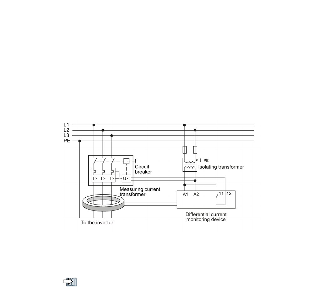 ● For inverters with rated input currents> 125 A referred to LO, use a type B MRCD (for