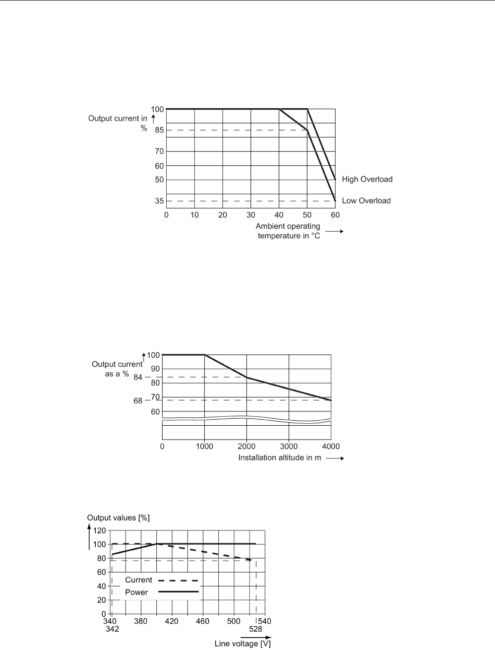 Above 1000 m above sea level you must reduce the inverter output current as a result of the