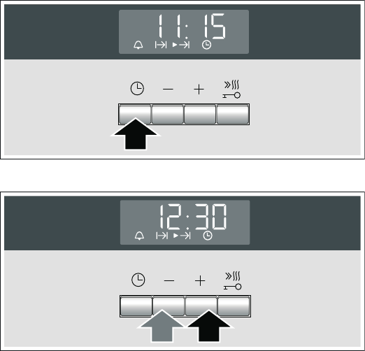 In der Anzeige leuchten die Zeitsymbole, der Pfeil