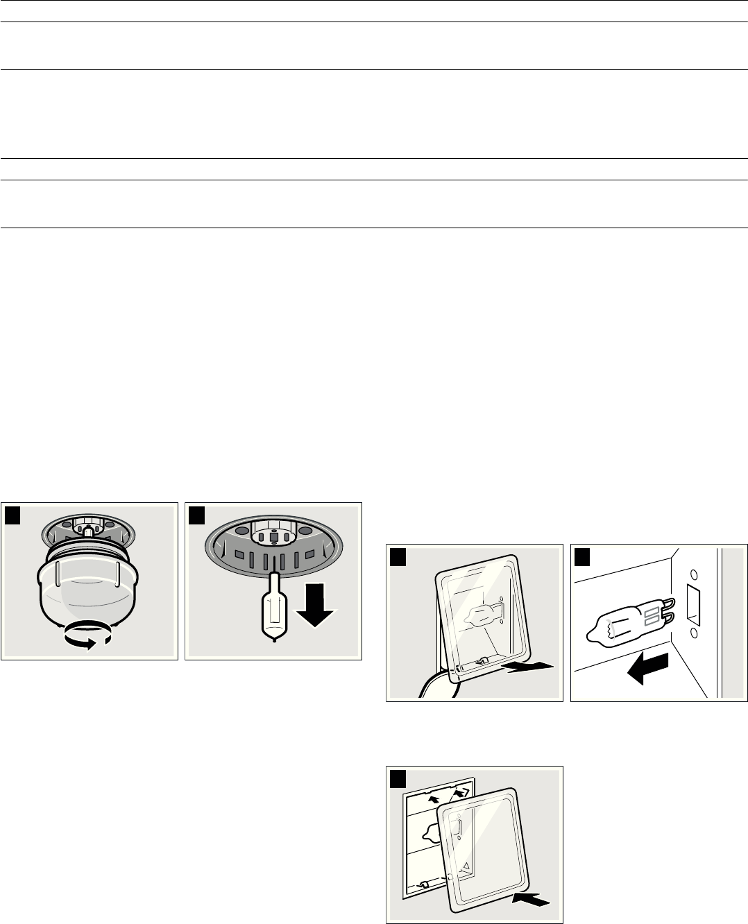 - ■ Beim Auswechseln der Garraumlampe stehen die Kontakte der Lampenfassung unter Strom. Vor dem Auswechseln den Netzstecker ziehen oder Sicherung im Sicherungskasten ausschalten.