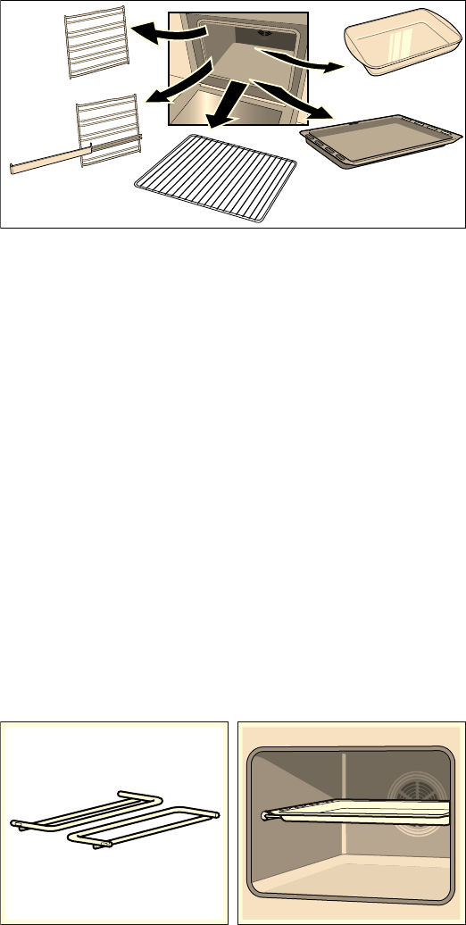 - Zubehör immer richtig herum in den Garraum schieben. Siehe Beschreibung Zubehör in der Gebrauchsanleitung.