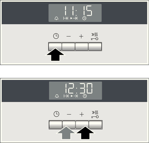 In der Anzeige leuchten die Zeitsymbole, der Pfeil